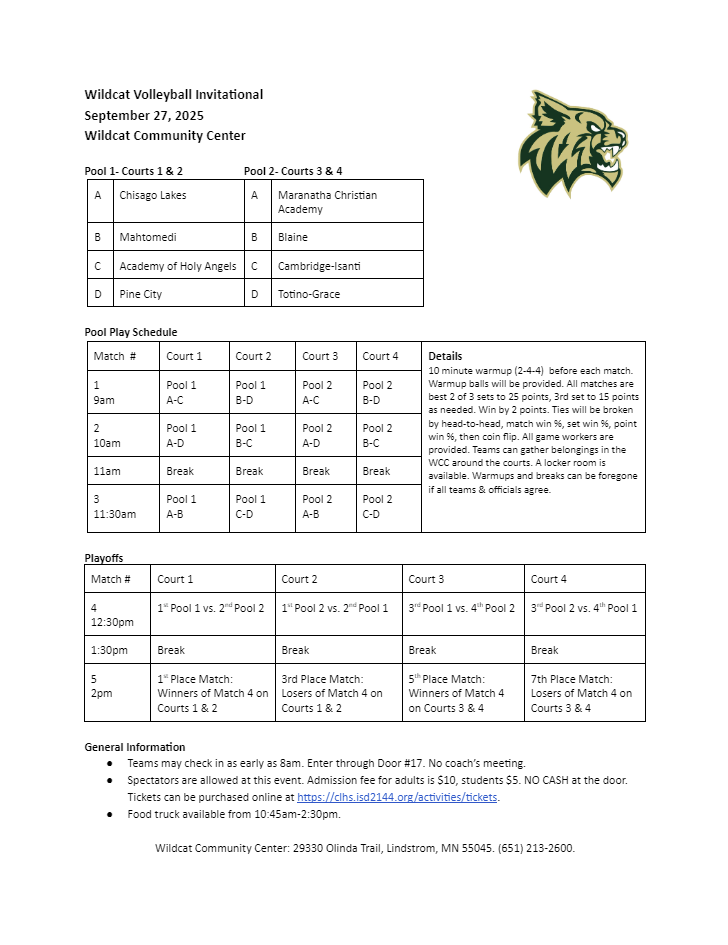 Holy Angels beats Chisago Lakes, 25-15 & 25-22.